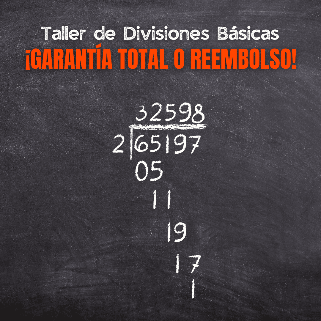 ¡Si tu hijo de 2do. a 4to. grado, no resuelve al final del taller, la división de 5 cifras en el dividendo y 1 en el divisor, te devolvemos tu dinero!